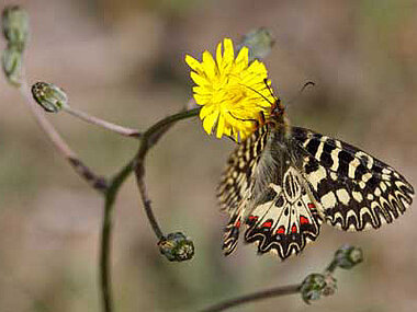 Höhepunkte der Portugalreise Anfang April waren sicherlich der Fund eines Chamaeleons und die Malteserschwämme in der Ria Farmosa sowie die Bootstour auf dem Tejo-Fluß, die faszinierende Einblicke in eine arten- und individuenreichen Reiherkolonie ermöglichte sowie als besonderes Highlight die Reiseteilnehmer Zeugen einer Zwergadlerkopula werden ließ. Beeindruckend auch der Abstecher ins Alentejo – die hügelige Kultursteppe zeigte sich von Natternköpfen bis zum Horizont lila übersät und Großtrappen, Kaiseradler und Triele waren zu sehen. Die für die Reise angegebenen Orchideenarten konnten an den angesteuerten Fundorten nahezu alle in Blüte vorgefunden werden, wobei Endemiten wie die die Algarve-Ragwurz oder die Quarteira-Ragwurz besonders hervorgehoben werden können. Bemerkenswerte Pflanzen aus anderen Verwandtschaftsgruppen waren etwa die Iberische Bergwald-Pfingstrose, der Peruanische Blaustern oder die Portugiesische Schachblume. Mit spanischem Osterluzeifalter , Iberischem Segelfalter, Grüngestreiftem Weißling und Falschem graublauen Bläuling konnten auf der Reise neben etlichen weiter verbreiteten Arten, vier typische Frühjahrs-Tagfalterarten der iberischen Halbinsel beobachtet werden.